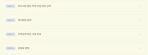 - 삼성화재 다이렉트 홈페이지 접속: 삼성화재 다이렉트 홈페이지에서 자동차보험 가입 또는 갱신 시 자녀사랑 할인 특약을 선택합니다.