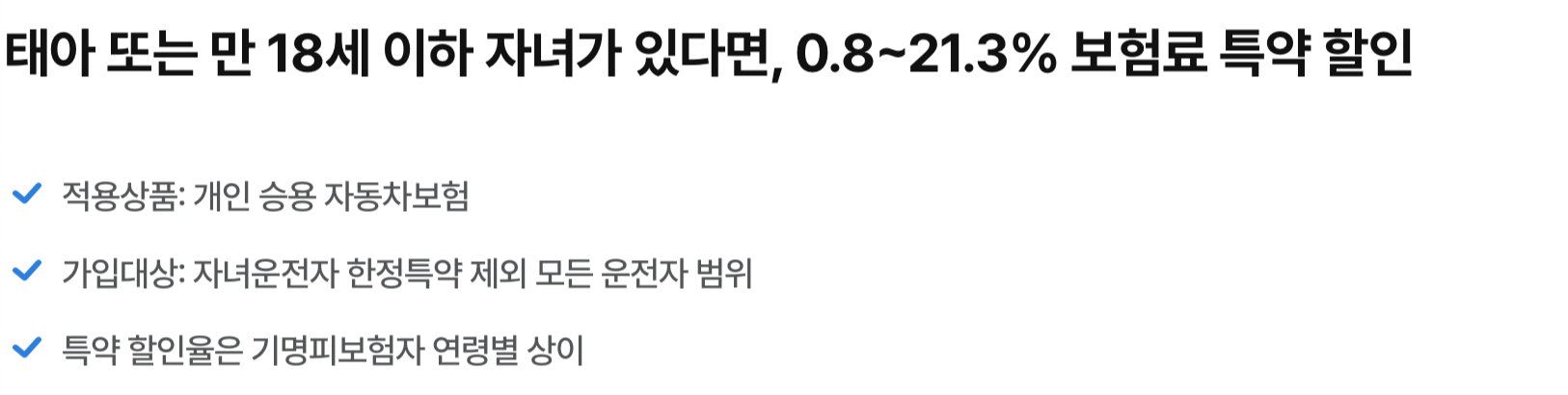 이 특약은 만 18세 이하의 자녀가 있는 차량 소유자가 가입할 수 있습니다. 🚼