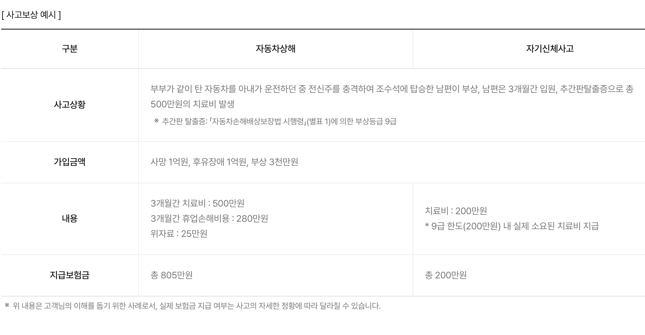 | 장해/후유장해 보장 | 사고로 인한 장해 발생 시 별도 보상 |