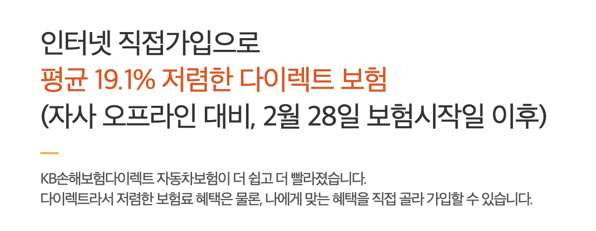 인터넷으로 가입하면 평균 19% 저렴하게 보험에 가입할 수 있습니다. 다이렉트 보험 가입 고려해 보세요.