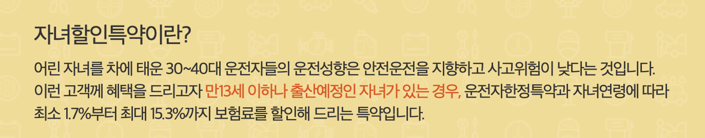"만 13세 이하의 자녀가 있는 경우, 자동차보험료를 할인해주는 특약" 입니다.