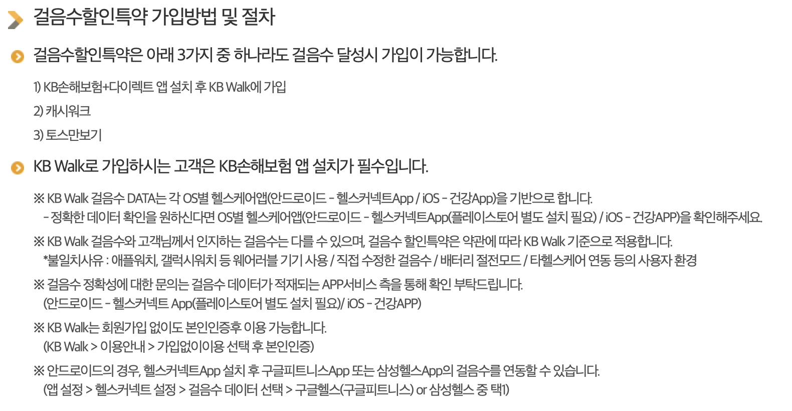 | 필수 조건 | KB손해보험 지정 걷기 앱 설치 및 연동 |
