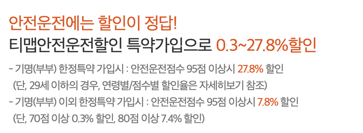 | T맵 착한운전 할인 특약 | T맵 앱 이용해 안전운전 실천 | 최대 27% 할인 |
